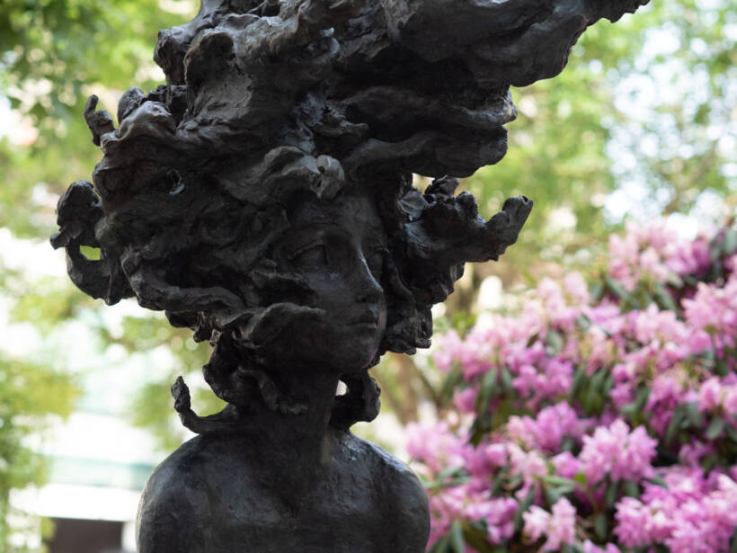 Lovée dans son écrin de verdure, la sculpture « Souffle de vie » incarne une célébration vibrante du moment présent, faisant écho à la force de vie qui anime chacun de nous.