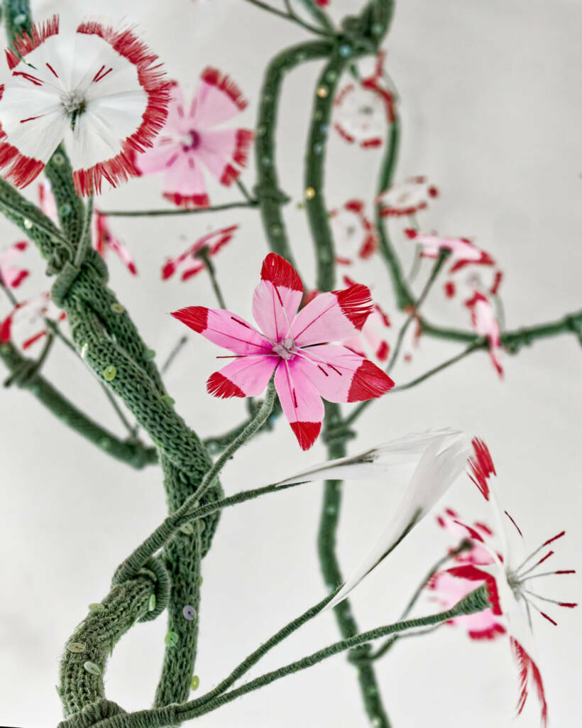 Se définissant comme un artiste sculptural textile et créateur brodeur expérimental, Yanis Miltgen explore des matériaux non conventionnels et développe un processus