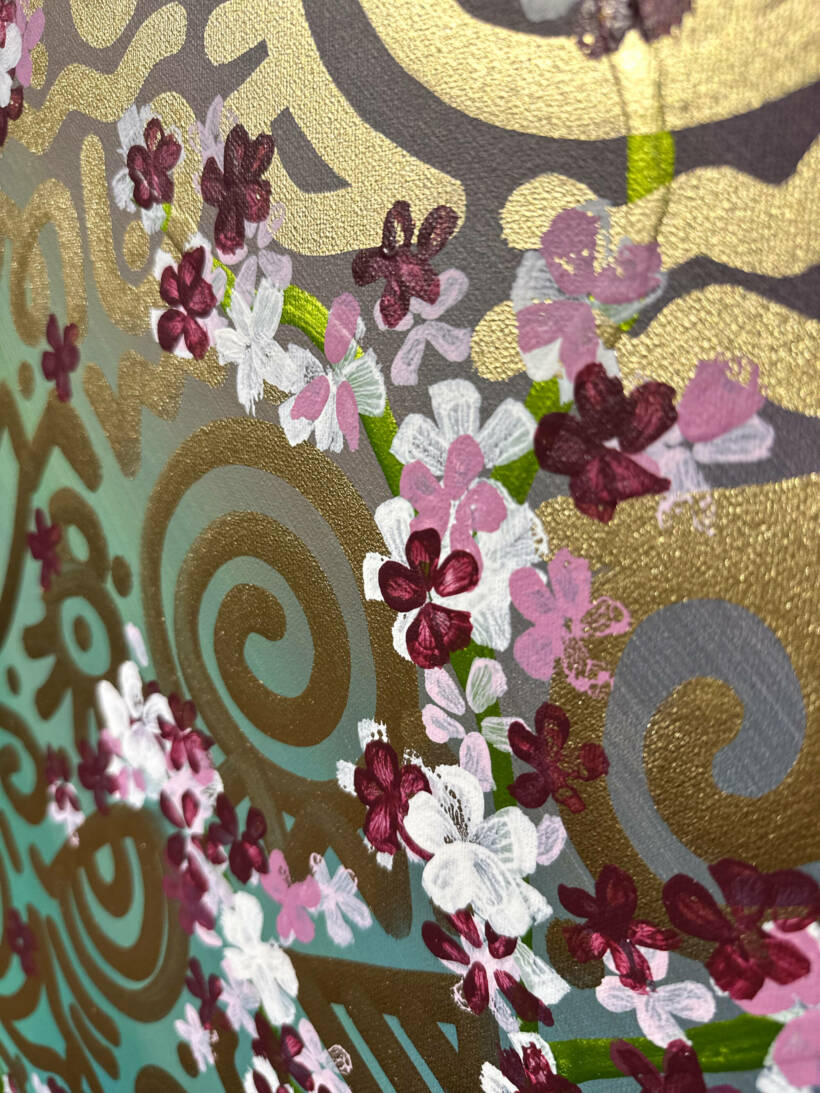 Woo – Cerisier en ville – Acrylique et encre sur toile – 116 x 89 cm