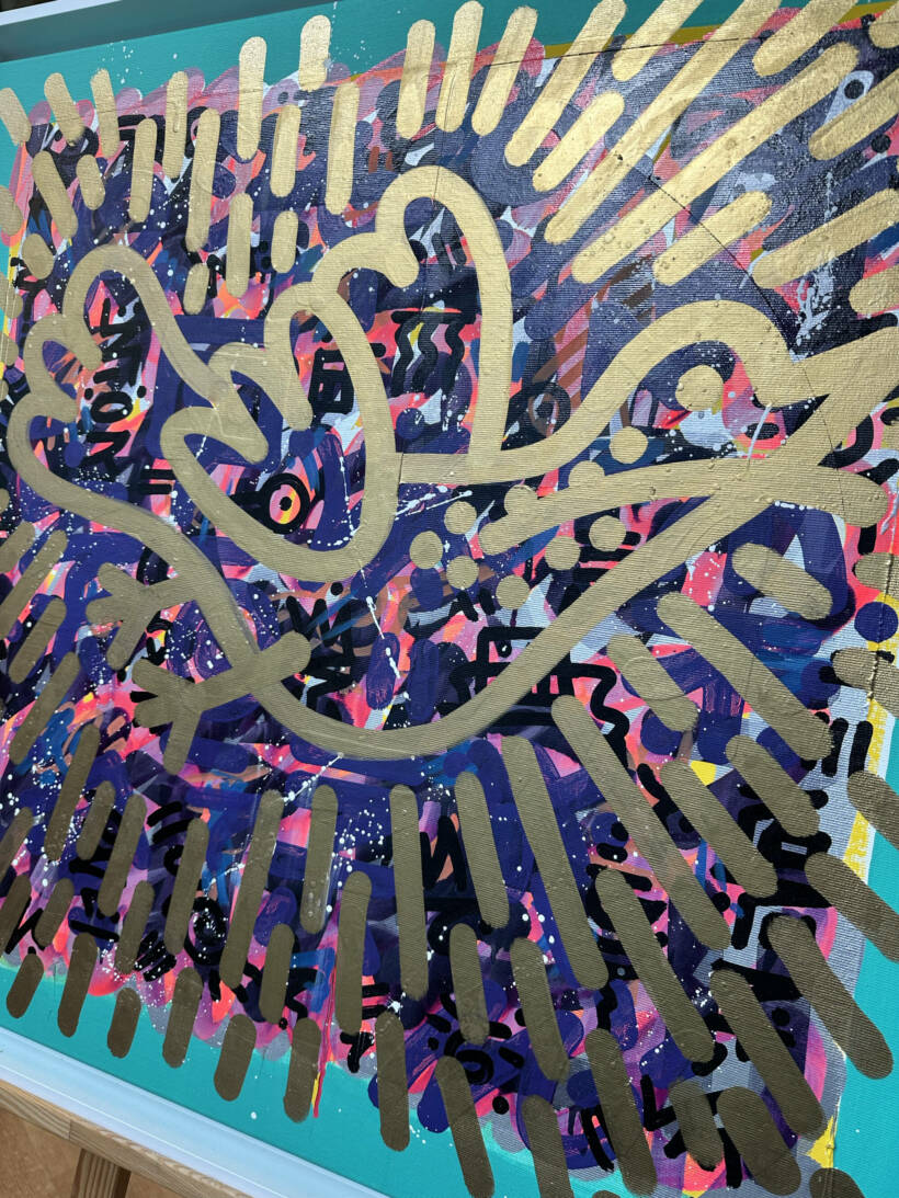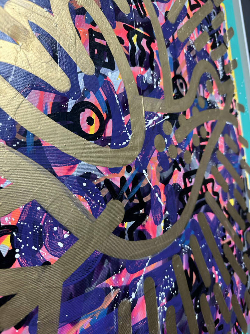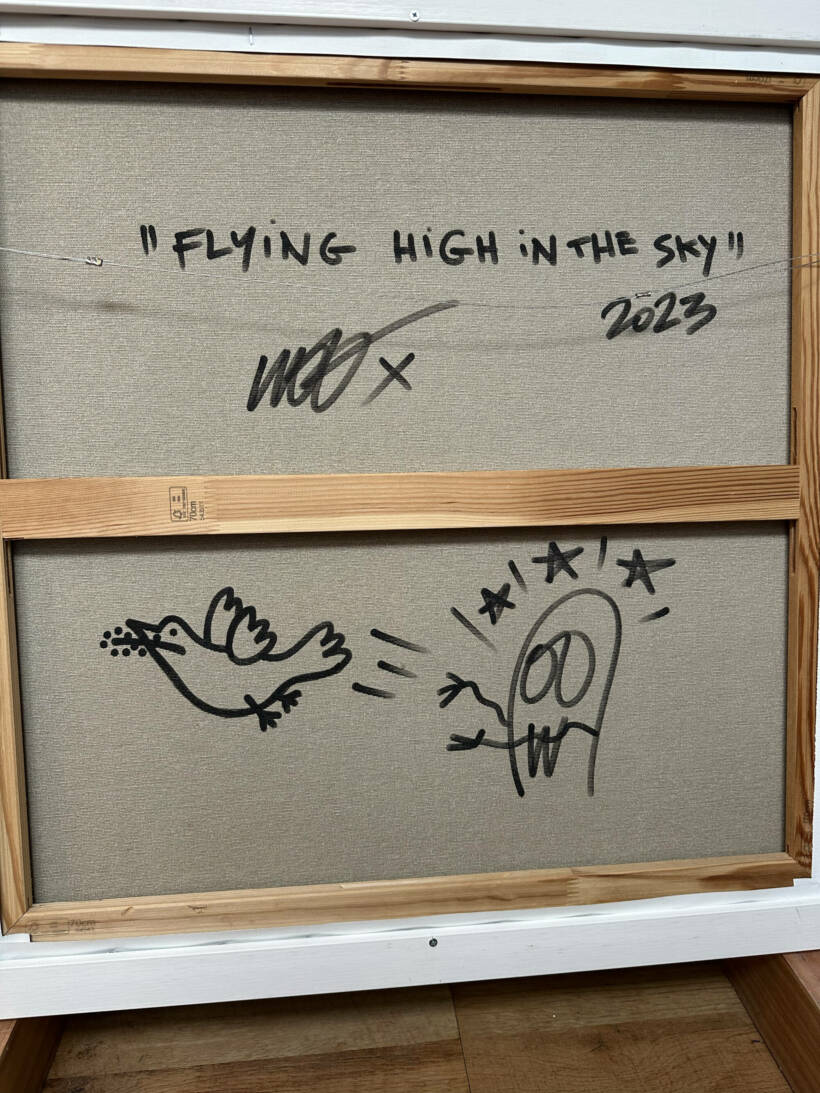 Woo – Flying high in the sky – Acrylique et encre sur toile – 70 x 70 cm – 2023