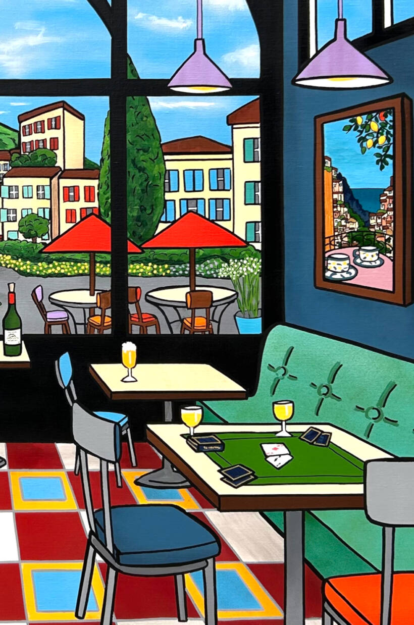 Alione – La partie de cartes – Techniques mixtes sur toile – 120 x 120 cm