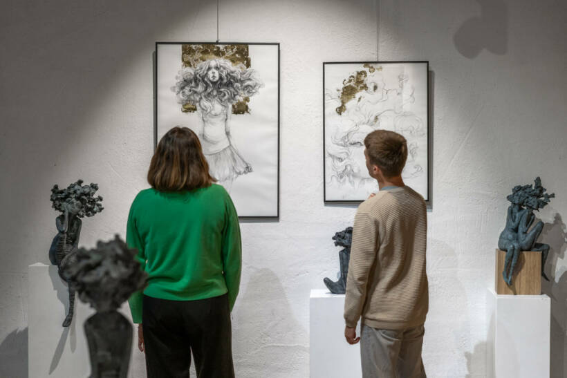 » 0de à la Femme – vision croisées « , un dialogue entre la délicatesse des sculptures et dessins de Valérie Hadida et l’énergie vibrante des peintures de Seaty