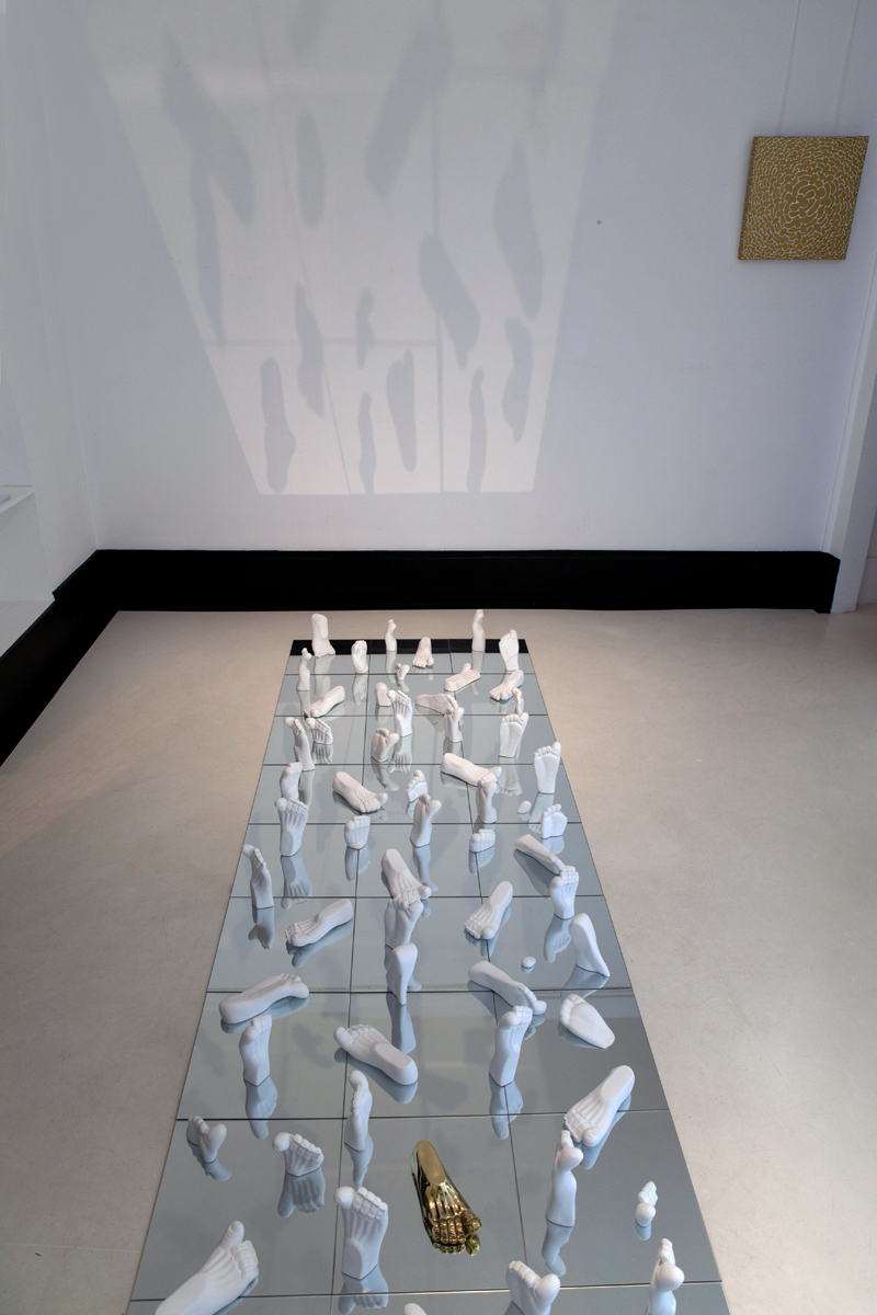 Catwalk, sculptures « pieds » sur miroirs. Installation.