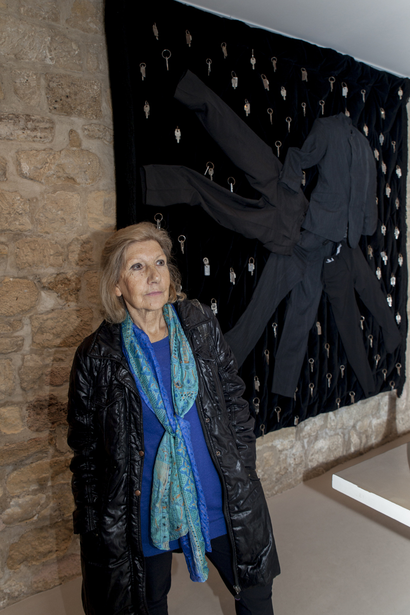 L’artiste Marie Piselli, devant sa toile « Champs », série Trèfles.