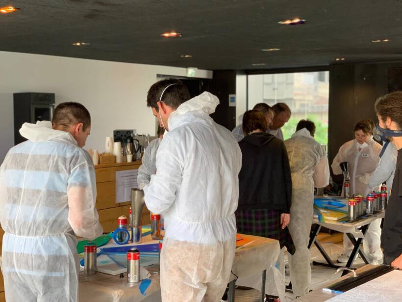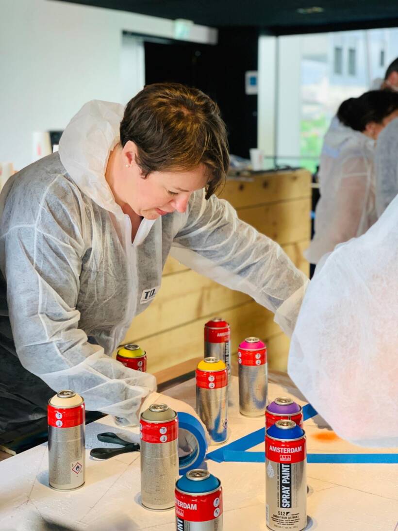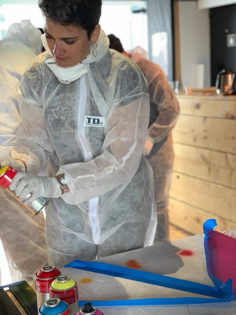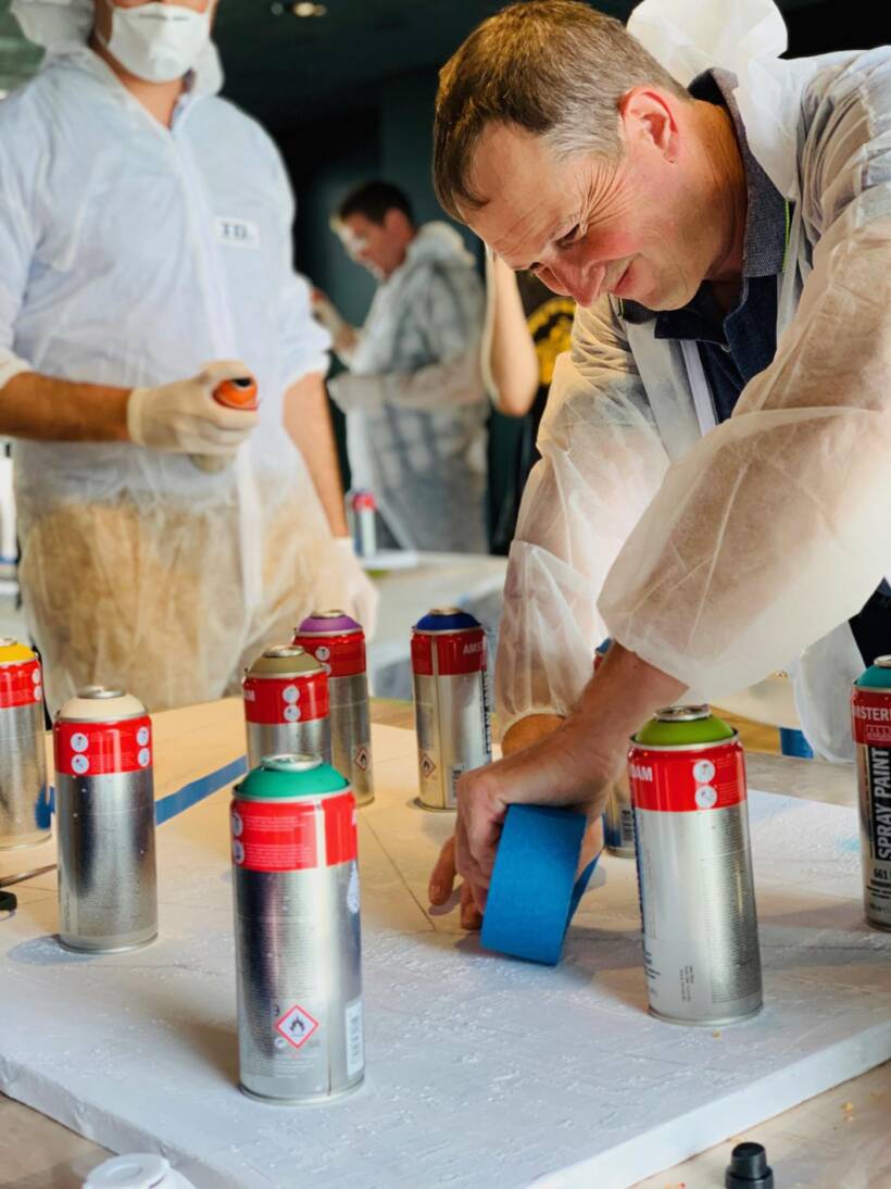 L’événement a débuté par une visite guidée : l’occasion de découvrir une trentaine d’œuvres urbaines, les analyser et les décrypter. Puis, les collaborateurs se sont retrouvés dans un espace privatisé pour quelques heures d’atelier artistique. Enfin, les participants ont été invités à réfléchir à la raison d’être et aux valeurs de Groupama avant de les retranscrire sur toile « à la manière » de la street artiste Stoul.