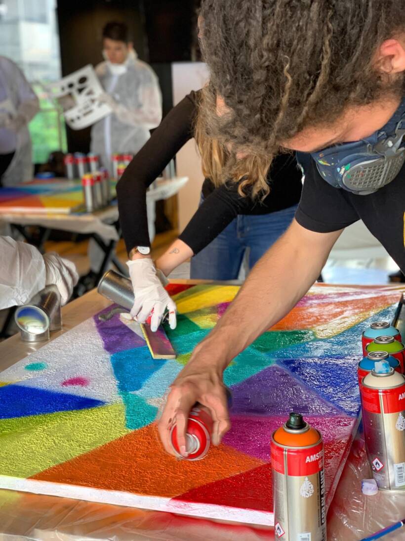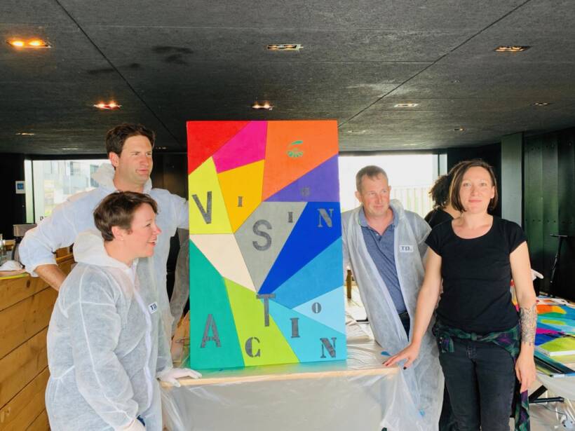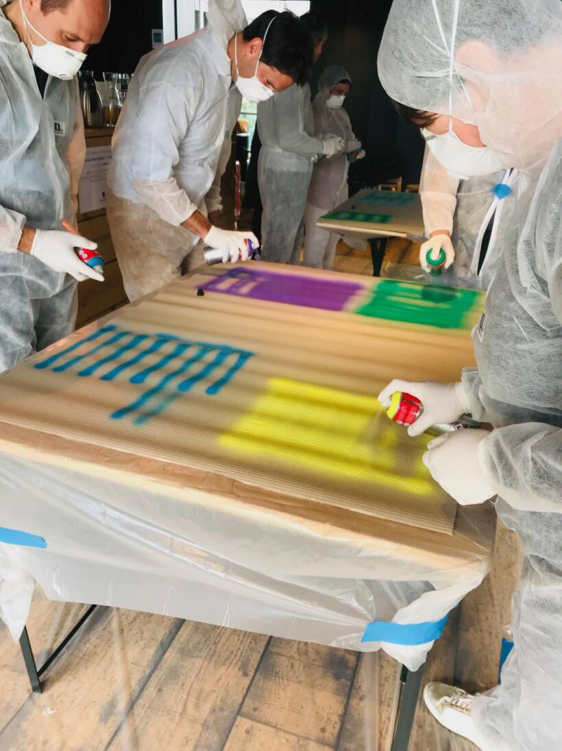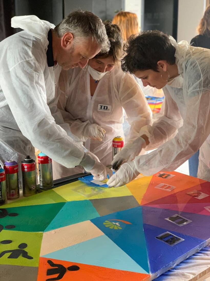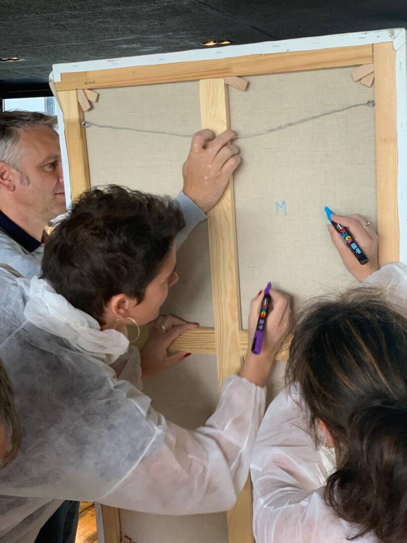 Cerise sur le gâteau : les toiles ainsi créées viennent témoigner de ce moment unique et laissent une trace de ce beau défi artistique relevé en équipe !