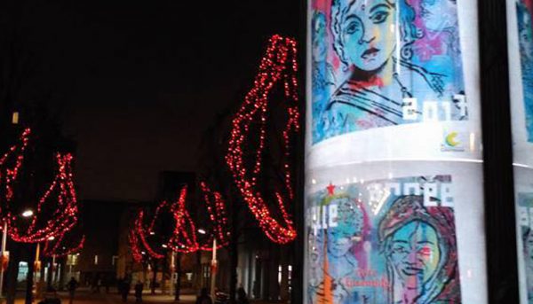 Cette toile, exposée tout le mois de Janvier à la Mairie, a été déclinée sur différents supports, affiches, carte ou encore e-card. Une cabine Photomaton, mise à disposition gracieusement, désignée par la même artiste complète le dispositif.