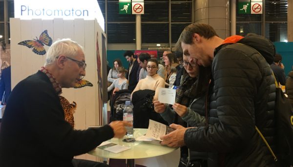 Signature-dédicace à l’occasion de la présentation en avant-première de la cabine Photomaton signée du street artiste Mosko