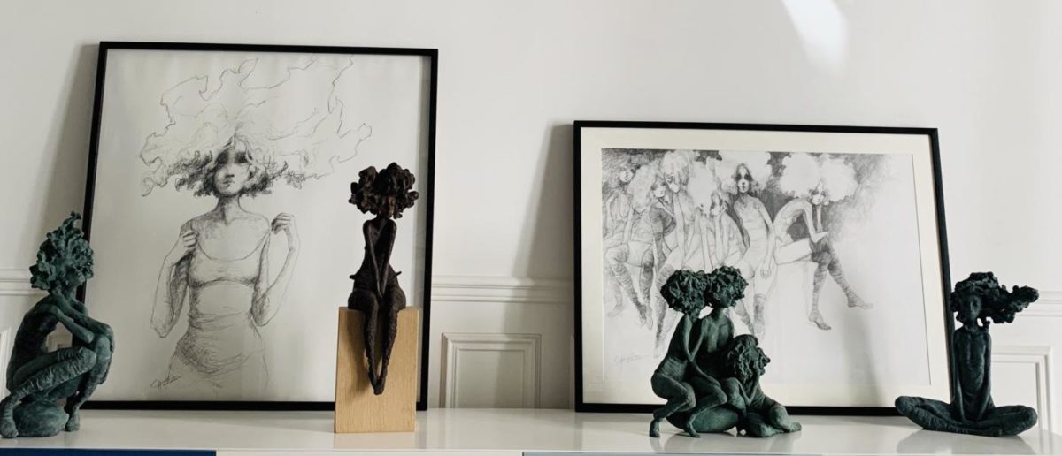 Enfin, elle nous dévoile son processus créatif et son talent pluriel en nous présentant quelques dessins. En 2 comme en 3 dimensions, l’artiste s’empare de la matière et nous convie à un voyage au travers de l’âme humaine…