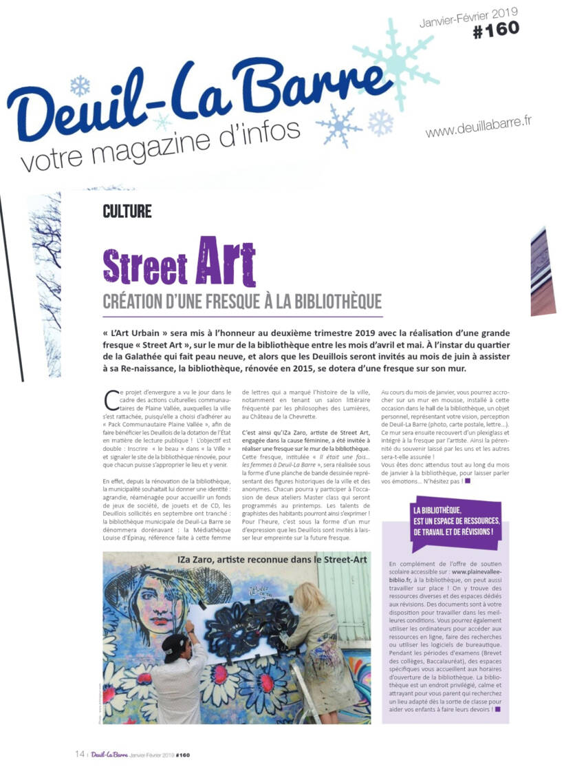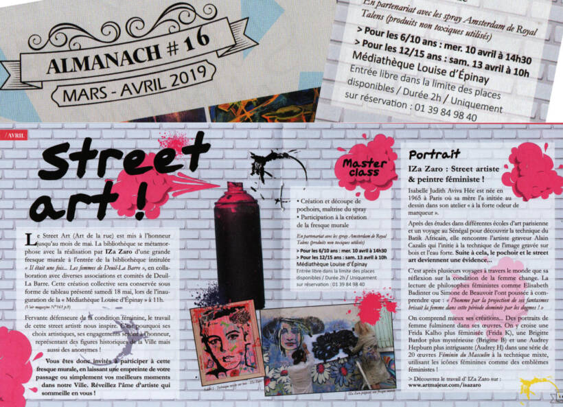 À partir du 8 avril et jusqu’à l’été 2019, l’Art Urbain s’invite à Deuil-La Barre et met les peins feux sur la street artiste IZa Zaro.