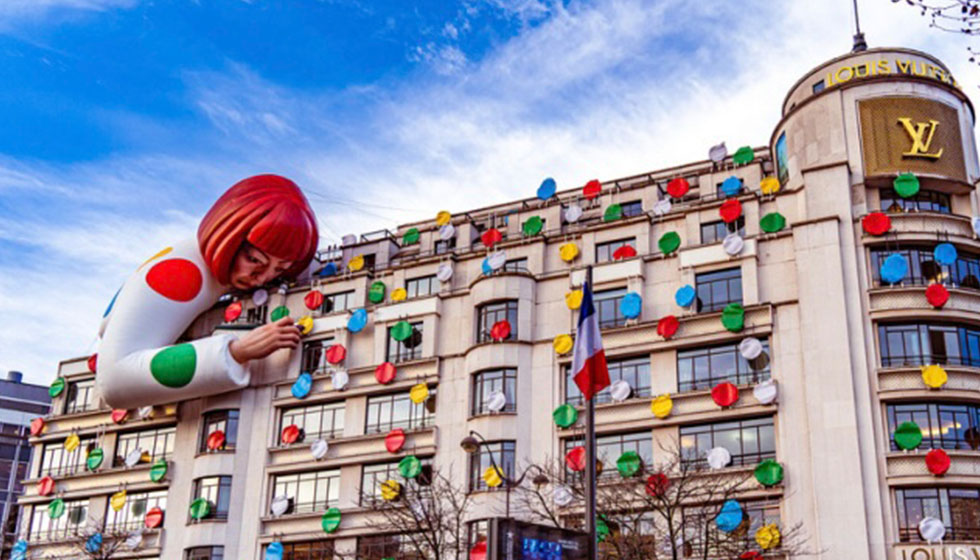 La grande prêtresse de l’art conceptuel, Yayoi Kusama, signe une nouvelle collaboration haute en pois et en couleurs avec le géant Louis Vuitton !