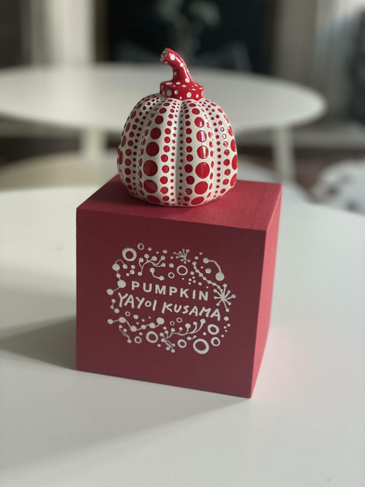 Nous présentons ici, Pumpkin red, l’un des objets d’art officiels de Kusama basé sur le motif le plus célèbre de la « citrouille ».