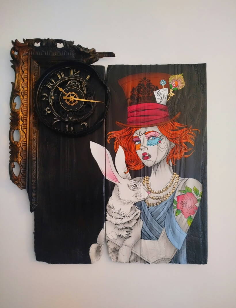 Techniques mixtes sur bois brûlé – 78 x 68 cm