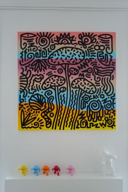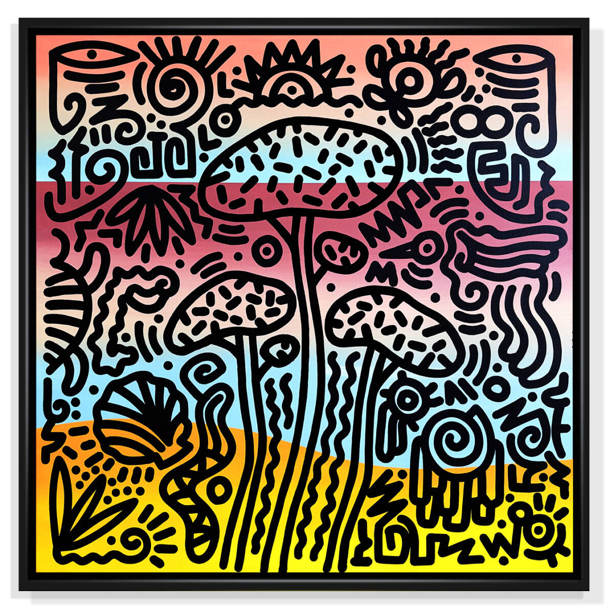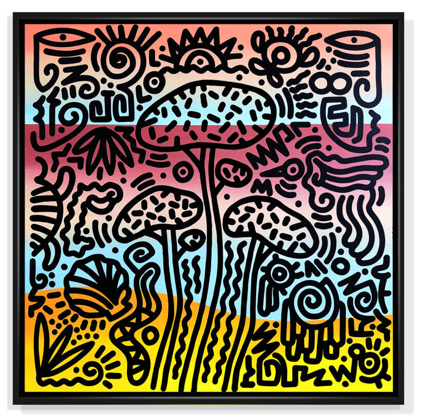 Woo – Derrière les pins, l’horizon – Encre et acrylique sur toile – 110 x 110 cm – 2025