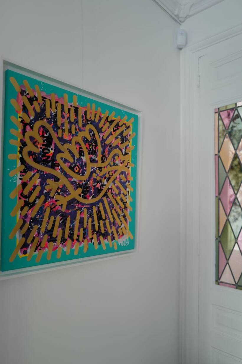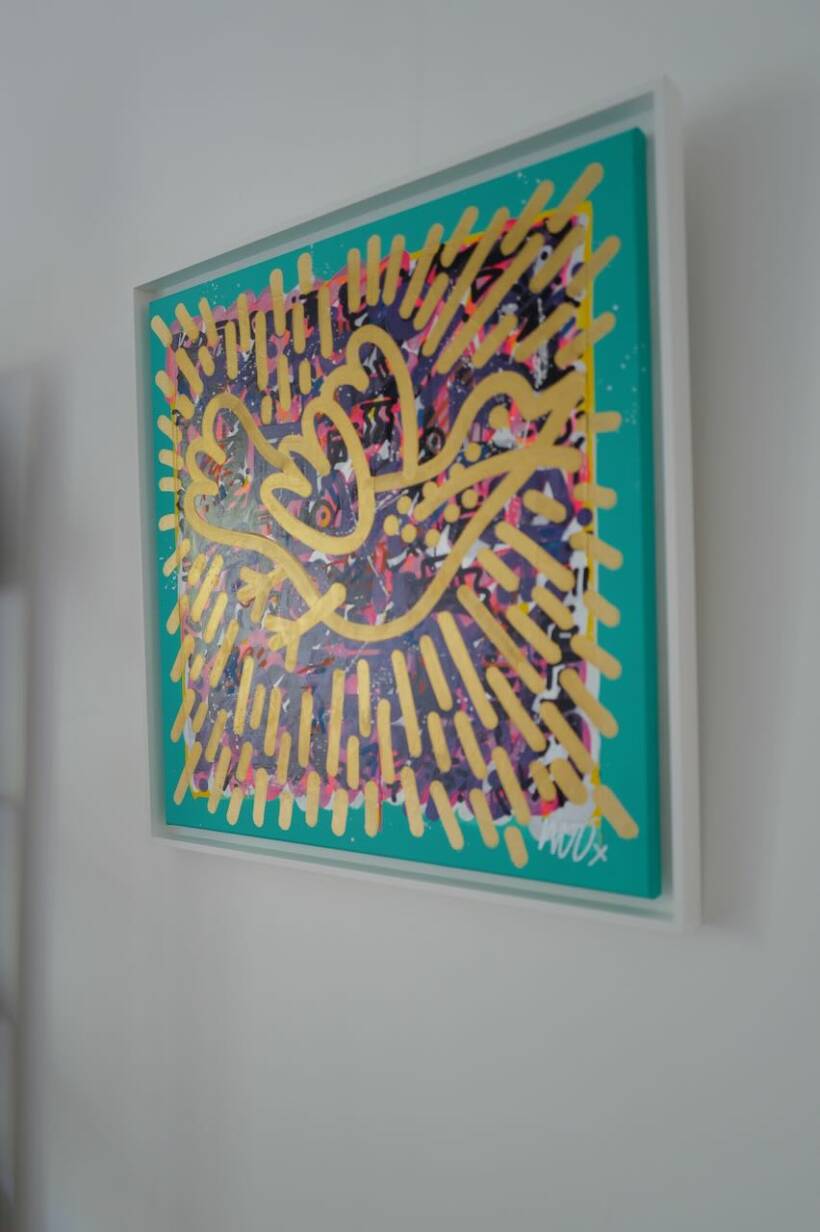 Woo – Flying high in the sky – Acrylique et encre sur toile – 70 x 70 cm – 2023