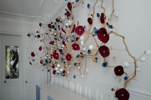 Nous contacterSculpture pouvant prendre la forme et le volume souhaités (peut être accroché au plafond, au mur, sur un support…). Elle se compose de 4 branches de 9,5m chacune pour un total de 38m. Les dimensions sont variables mais une branche couvre environ 1 m²