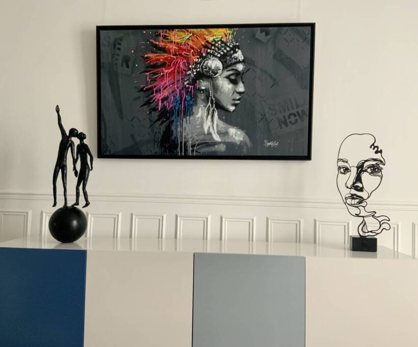 Seaty nous transmet au travers de cette peinture un message positif et nous incite à poursuivre nos rêves et à croire en nos capacités.
