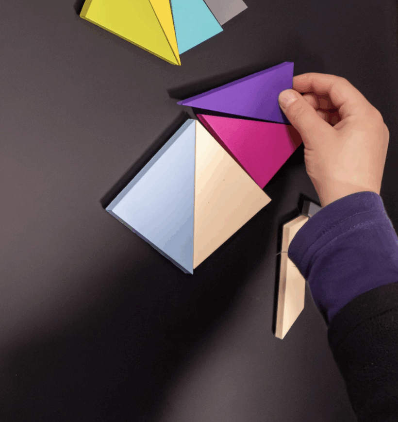 Pièces aimantées en bois peint sur plaque magnétique, encadré 40×50 cm – Pièce unique – 2024