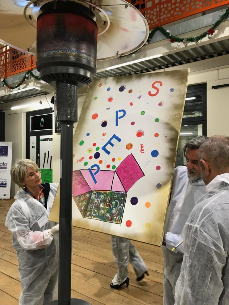 Moyen : Proposer un décentrage artistique et faire co-créer par les deux équipes du club une œuvre artistique symbolisant les valeurs et les acquis du groupe à l’issue de ces 2 années de travail ensemble.